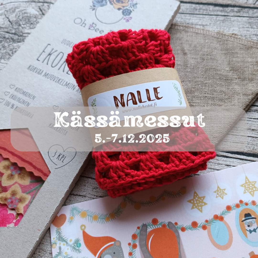 Jouluisia Kässämessuja netissä vietetään 5.-7.12.2025 Kässämessut netissä on virtuaalinen messutapahtuma. Verkkosivut: https://virtualevents.fi/kassamessut/ Facebook-sivut:...