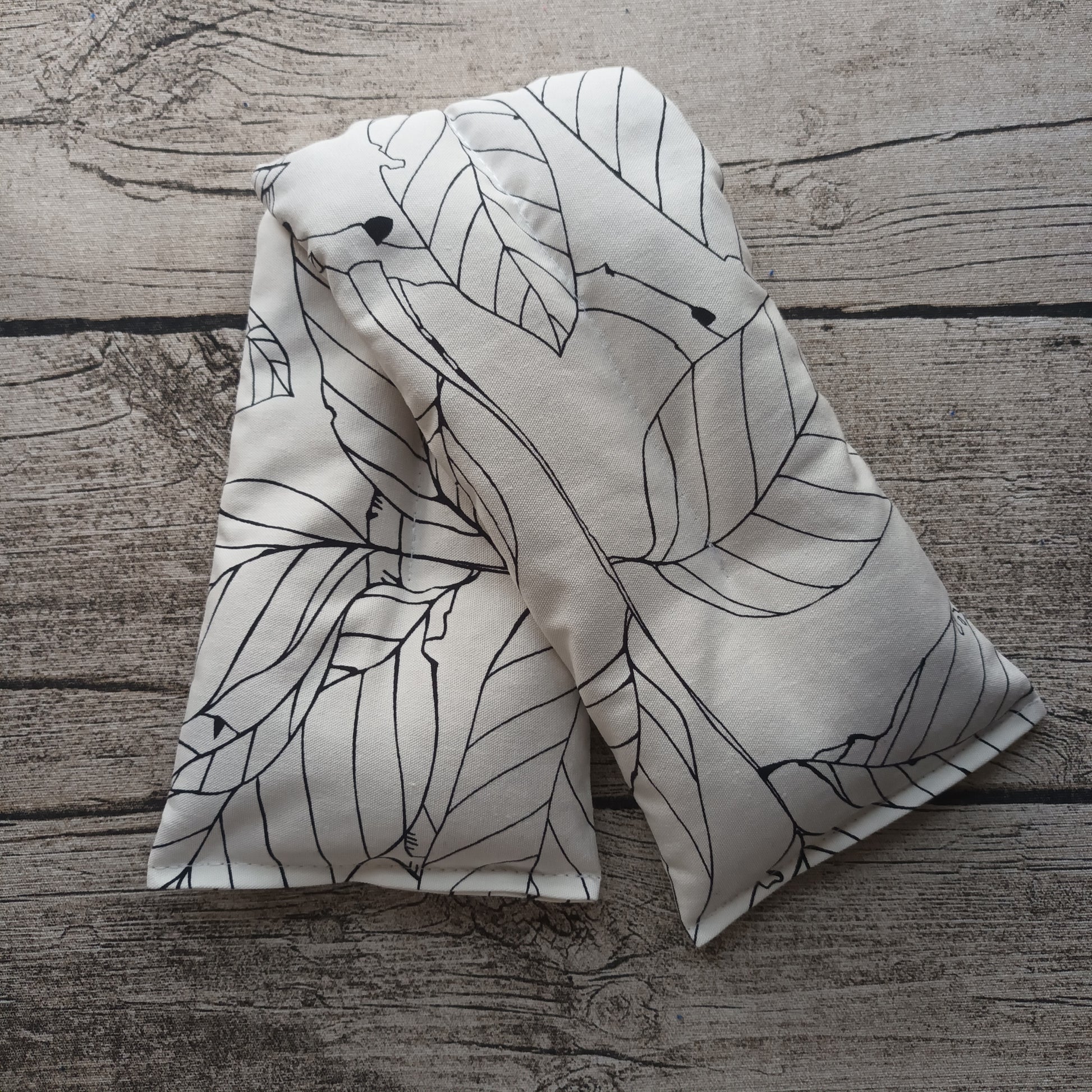 Valmistettu kotiompelimossamme Siuntiossa. Kangas on 100% puuvillasta (kierrätetty kangas). Tyyny on täytetty suomalaisella kuoritulla kauralla. Tyynyn koko noin 13 x 50 cm.