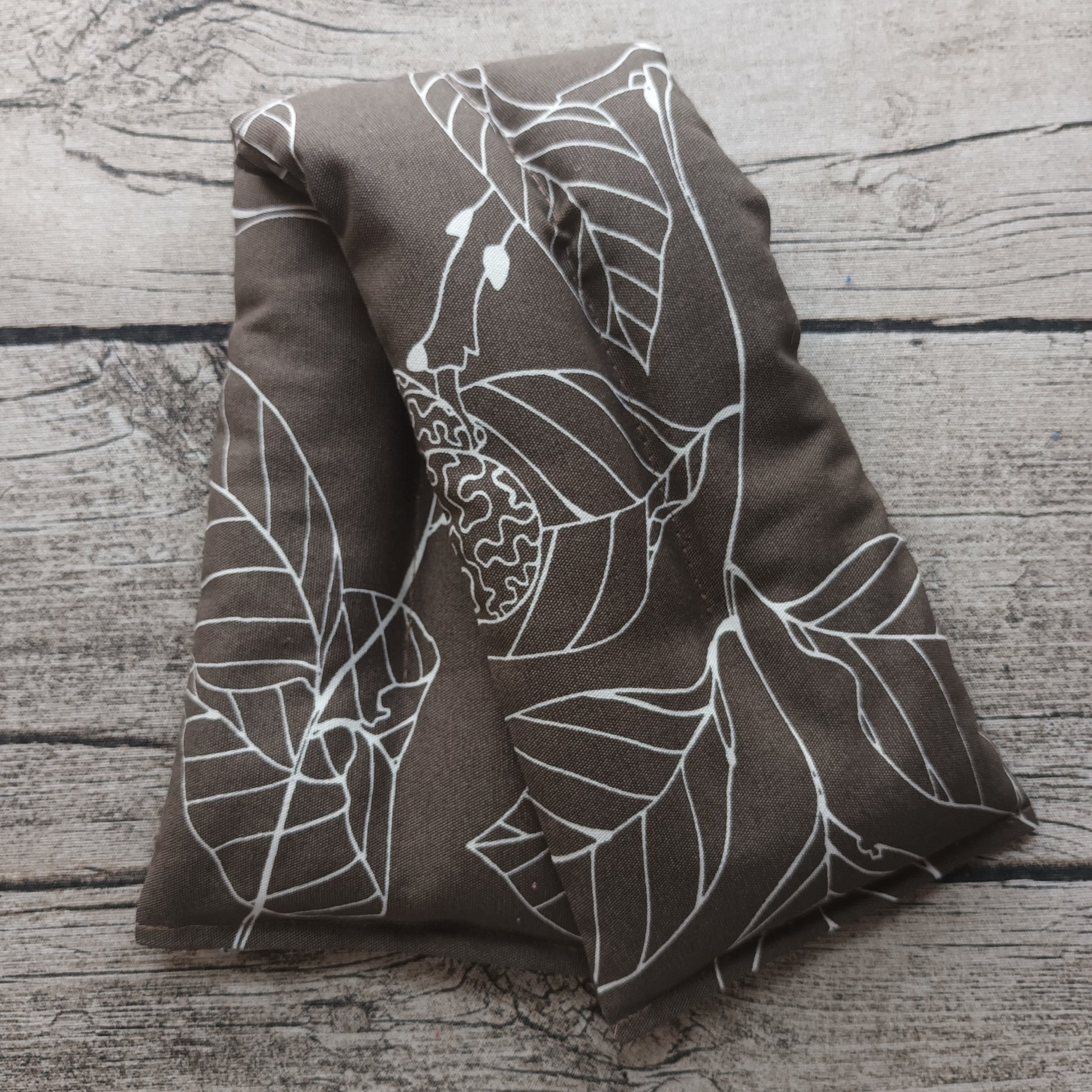 Valmistettu kotiompelimossamme Siuntiossa. Kangas on 100% puuvillasta (kierrätetty kangas). Tyyny on täytetty suomalaisella kuoritulla kauralla. Tyynyn koko noin 13 x 50 cm.