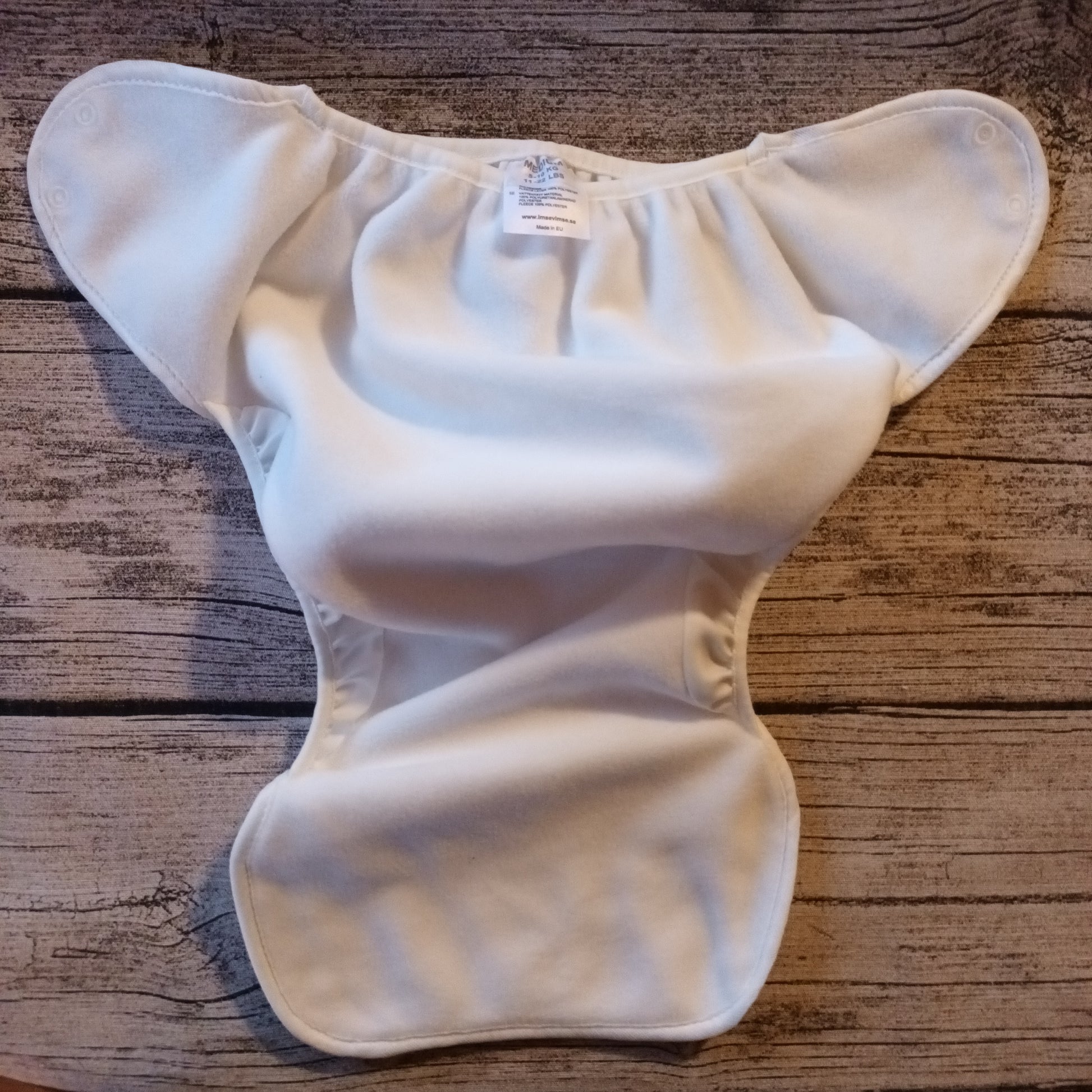 Vaippatyyppi: Taskuvaippa, jossa on ulkopintana on kosteuttapitävä pul ja sisäpintana fleece. Kerrosten väliin voidaan pujottaa imut takareunassa olevan taskun kautta.