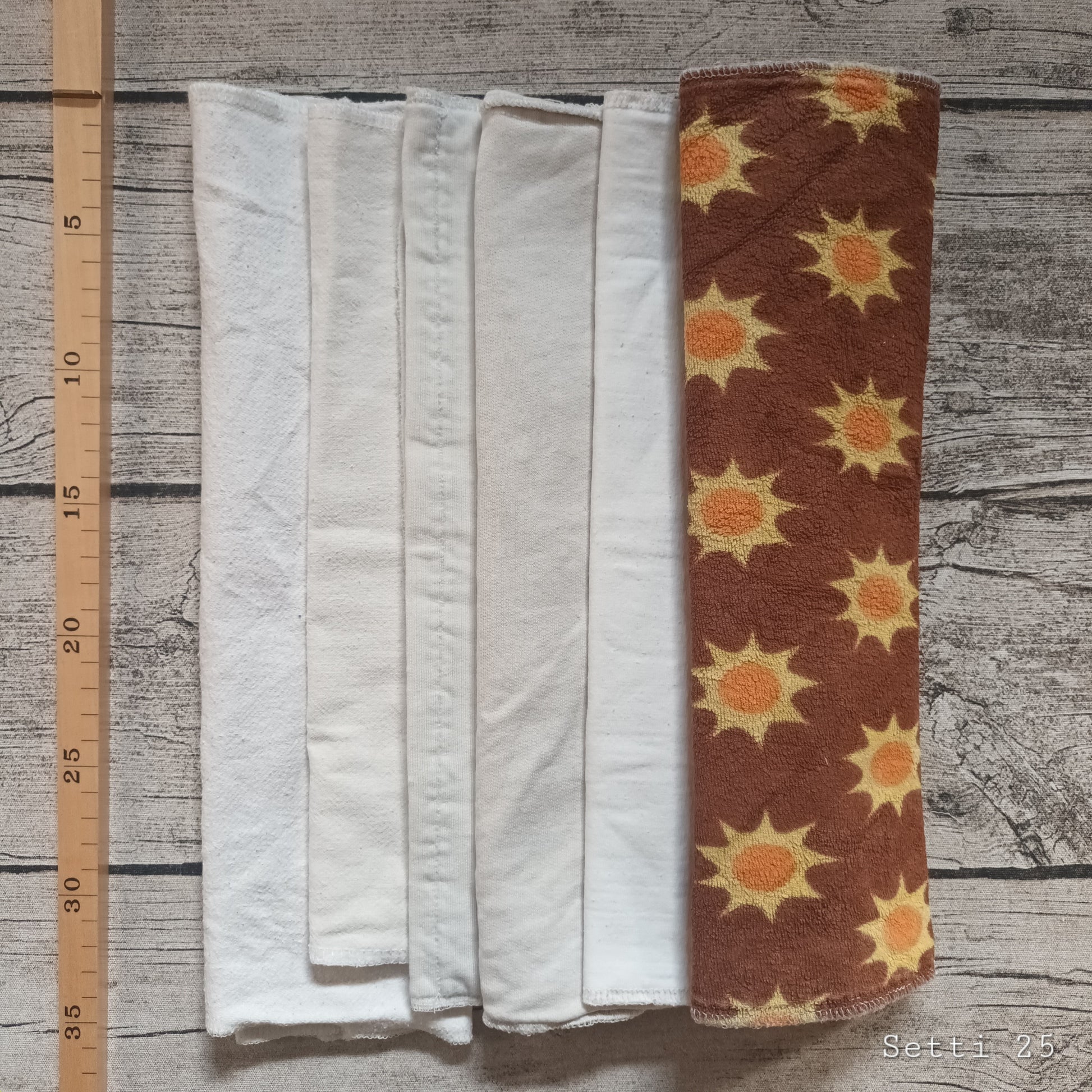 Valitsemalla käytetyn tuotteen, autat meitä kierrättämään kestovaippoja ja säästämään luonnonvaroja. Tuotteet ovat tarkastettuja ja tarvittaessa kunnosettuja. Annamme niille 1 kk:n tyytyväisyystakuun. Kiitos, että valitset kierrätetyn tuotteen.